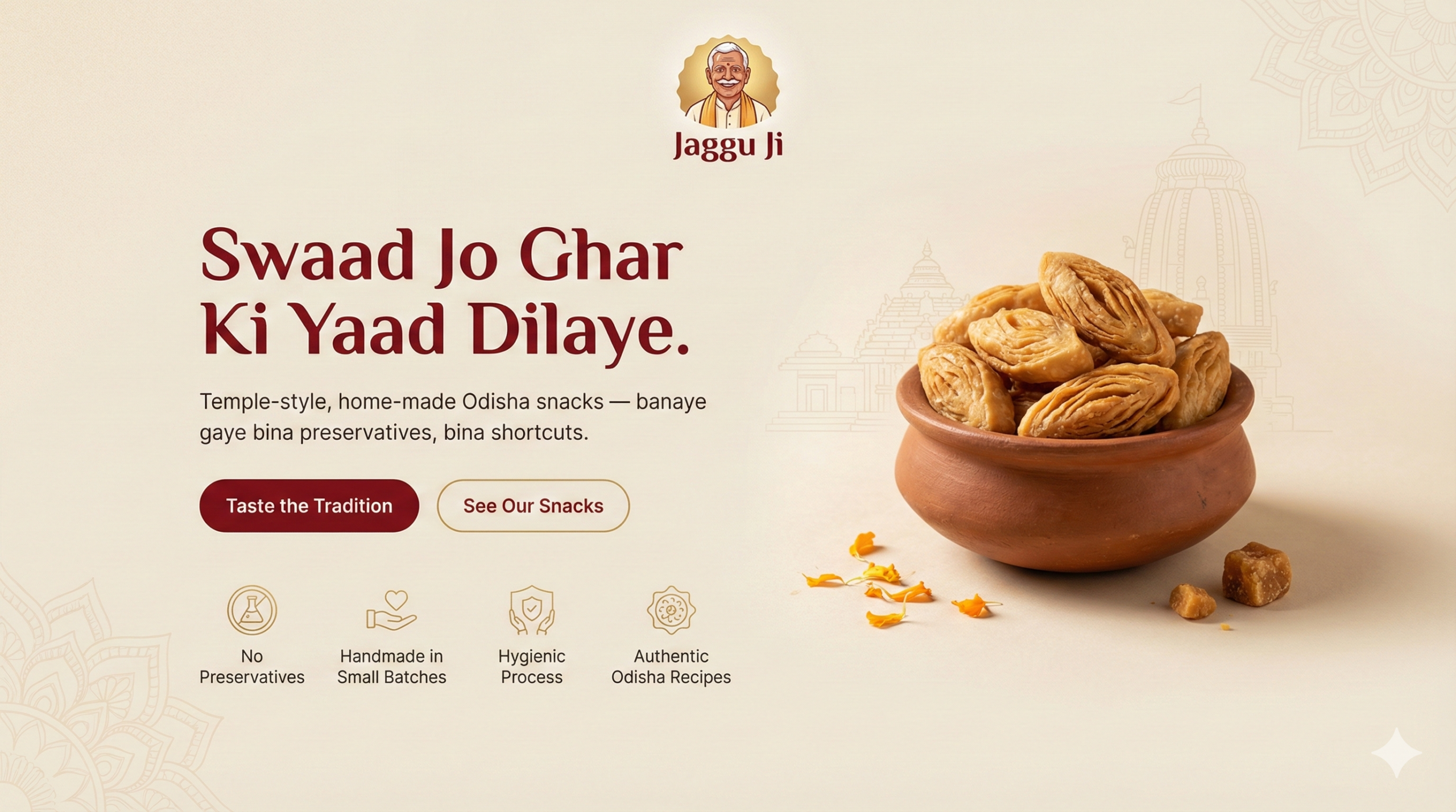 At Jaggu Ji, food isn’t rushed or over-processed. It’s prepared the way it has always been — with patience, honest ingredients, and recipes passed down through generations. From school tiffins to evening chai, our snacks bring back the comfort of home in every bite.